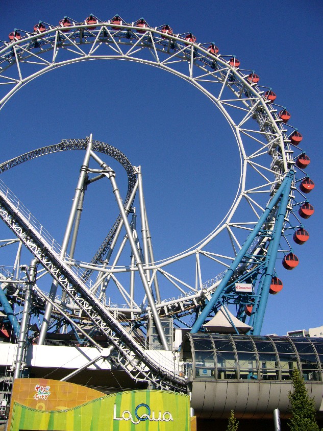 水道橋駅方面より東京ドームシティ入口。左端に高々と聳えるのがおじさん達永遠の友、馬ビルWINS。観覧車は記憶より小さかった・・・子どもの頃は大きく見えたのに。