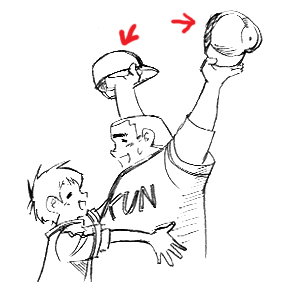 バット借りるぞ事件とかタオル事件もそうなんですが、大甲子園の山里って物理的に距離が近いんですよね。相手が持ってるもの、身につけてるものに、自然に手が出てる。遠慮がないっていうか。身体にタッチ☆より人の持ち物にタッチ☆の方が深い関係っていうか夫婦っぽい感じがする・・・いや、もちろんお触りもハグも大好きですけど。たぶん、お触りとかハグとかちゅーは能動的なアピールですよね。好きだよ、って伝えようとしてる行為というか。でも人の物に自然に触れるというのは、わざわざ愛情をアピールする必要もないくらい二人の関係性とか信頼感が深まってる感じがするんですよ。