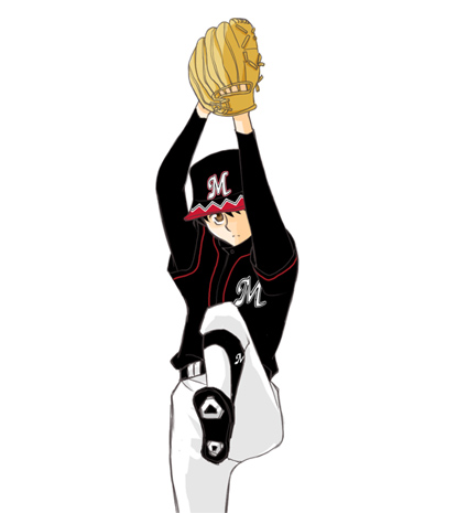 2005年のマリーンズってどんな感じだったんだろうと、昔の写真やら記事をたまに検索したりしているのですが、2005年はリーグ優勝のときも日本一を決めた時もビジユニなんですよね。わざとじゃないんだろうけどさすがKYチーム面目躍如というか。黒地にシルバーの背番号、真っ白のパンツが格好いいです。当時のソックスがどうだったのかよくわからなかったので、私の好きなサイドにMのロゴが入ってる古いタイプのにしちゃいました。あれすごく可愛いと思うんだ。フォームは模写です…orz すみません。誰かの写真を参考に~と思ったんだけど、里中はやっぱり里中だし。