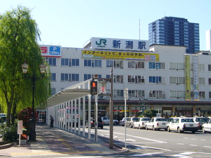 さる10/2(土)、ファーム日本選手権(鴎vs虎)観戦のついでといっちゃなんですが、新潟で水島ツアーを敢行して参りました。あぶさん・光の小次郎でもおなじみの新潟駅日本海側の玄関口であります。朝9:00。前日マリンスタジアムでロッテ最終戦を手に汗握りながら最後までがっつり観戦して終了後のステージも堪能したその翌日ということで、睡眠時間二時間です。我ながら久しぶりのヤンチャです。