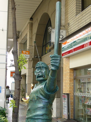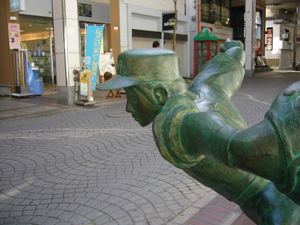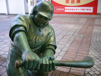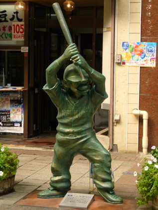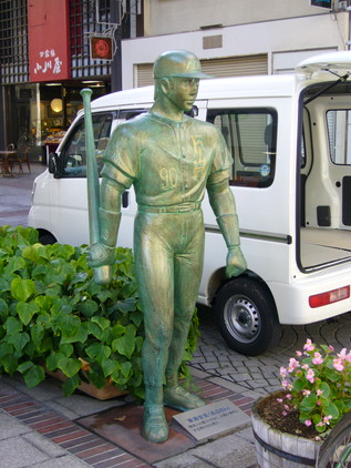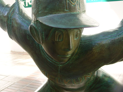 真正面から見るとぬぼーっとつっ立ってるだけの銅像ですが、角度を少し変えるとあぶさんお馴染みのポージングであることに気づきます。かっこいいです。顔立ちもなかなか凛々しくて素敵。