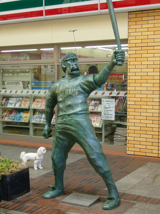 セブンイレブンをバックに雄雄しくHR宣言の正美たん。新潟のワンワンと正美たん。自慢の葉っぱが金具で留められているのが、作った人の苦労が忍ばれて可笑しいやらなにやら。ご苦労様です。もうちょっと背が大きいと良かったんですけど、まあ銅像制作上、なにか物理的制限があったのかもしれません。でも迫力はありましたよ。