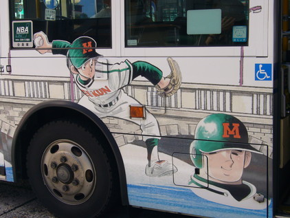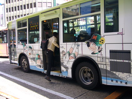 新潟駅周辺を循環する観光用巡回バス・ドカベン号。時間の関係で乗ることができなかったのでバスターミナルでつかまえてみました。来たかと思ったらすぐ出て行っちゃって、ゆっくり写真を撮れなかったのがちょっと残念…せっかく観光用なんだからさぁ…。もう一台、犬夜叉号もあるそうです。そっちは未見。