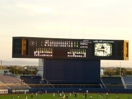 野球を見るにはとても良い球場なのですが、入るときに荷物検査があってペットボトルのふたはとられてしまうのと、中に煮炊きの出来る施設がなくて、球場飯はみんな外部からの持ち込みだったのがマイナスといえばマイナスでしょうか。ペットボトルの持込禁止の球場は多いのでまあ仕方ないですけど、球場飯はもちっとなんとかならないかな~と思いました。